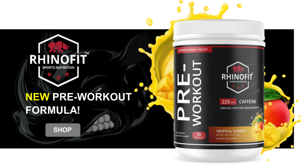 Check out our new Sunrise Pre-Workout Formula! RhinoFit’s Pre-Workout tropical sunrise is synthesized to improve exercise performance, increase muscle protein synthesis, prevent muscle tissue breakdown, increase energy, increase cognition, enhance your pump, and take your workouts to the next level! Our product is synthesized utilizing the latest scientific research and