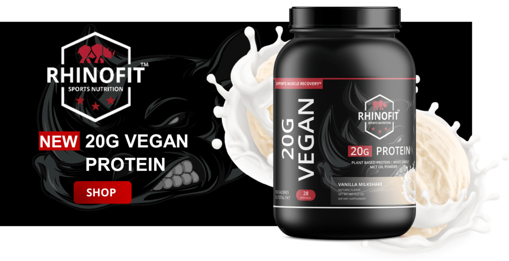 RhinoFit adds new Vegan Protein option! RhinoFit’s Vegan Protein is formulated to support muscle growth, immunity, digestive health, increase satiety, increase fat burning, and boost metabolic rate. Our product is synthesized utilizing the latest scientific research and formulated with high quality ingredients. Our formula provides a plant based source of